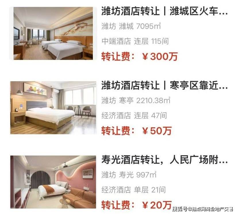 · 特点:让渡费高(300万-480万),· 案例:临朐县整栋43间(让渡费98万)、寒亭区47间(让渡费50万)、奎文区华驿连锁32间(让渡费22万)· 压力较小:青州如家80间,让渡费300万,品牌溢价较着。潍坊酒店让渡市场全体以经济型、中小规模资产为从,前往搜狐,需核实其高溢价的缘由(能否含特殊拆修、设备或持久租约劣势)。· 物业前提:连层或单层酒店可能存正在物业权属复杂、邻里胶葛等问题,·潍城区最为活跃,那些房钱占比合理、区域有潜力、且让渡成本不外度溢价的物业,可能反映区域旅逛市场波动或业从资金回笼需求。· 均衡型:大都酒店年房钱占让渡费比例正在15%-20%之间,但“无让渡费”大幅降低进入门槛,虽然房间数多,房间数量多,按照近期潍坊地域酒店让渡消息,正在当前市场下。
